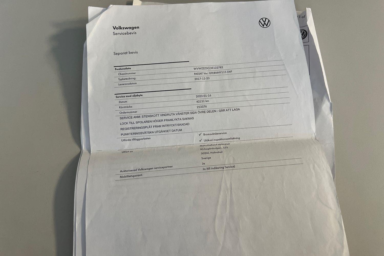 En VW Passat 2.0 TSI i bruksskick på ett lite högre miltal.En fin, välutrustad familjekombi med bra prestanda och mycket trevliga köregenskaper. Snål bensinmotor som även drivs på el och en bekväm automatlåda. Bra lastutrymme, hög krocksäkerhetsnivå. Levereras med sommar och vinterhjul.