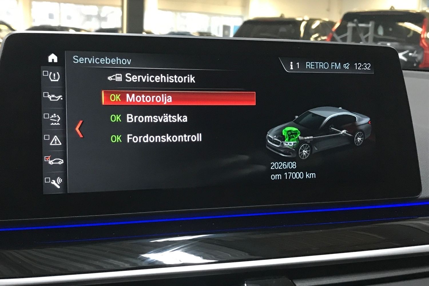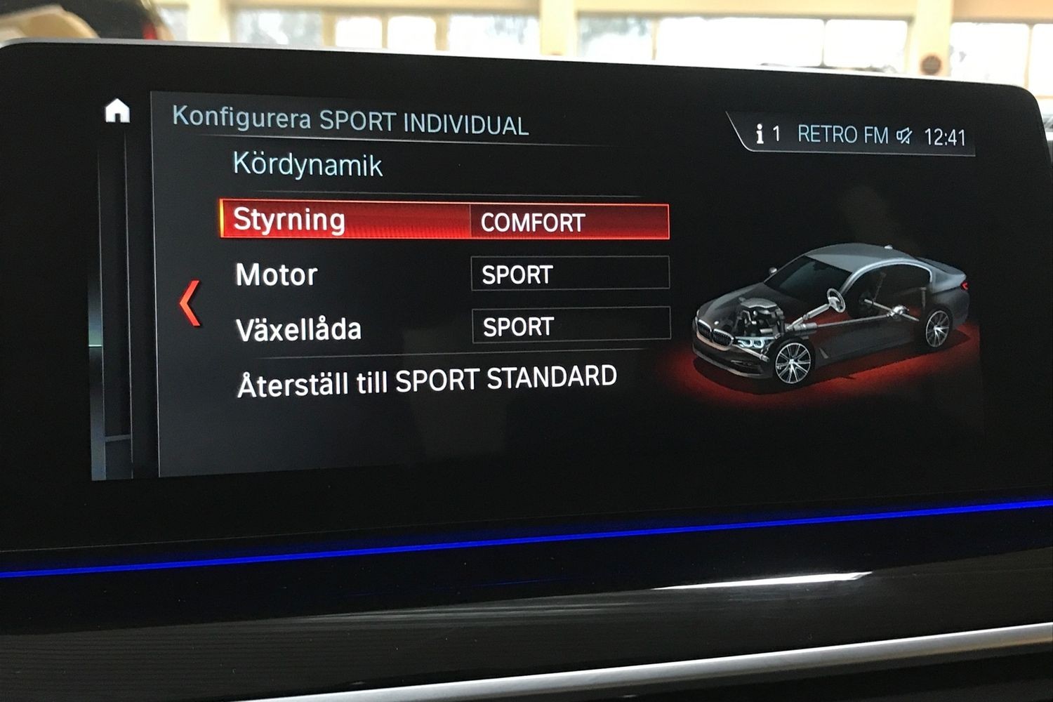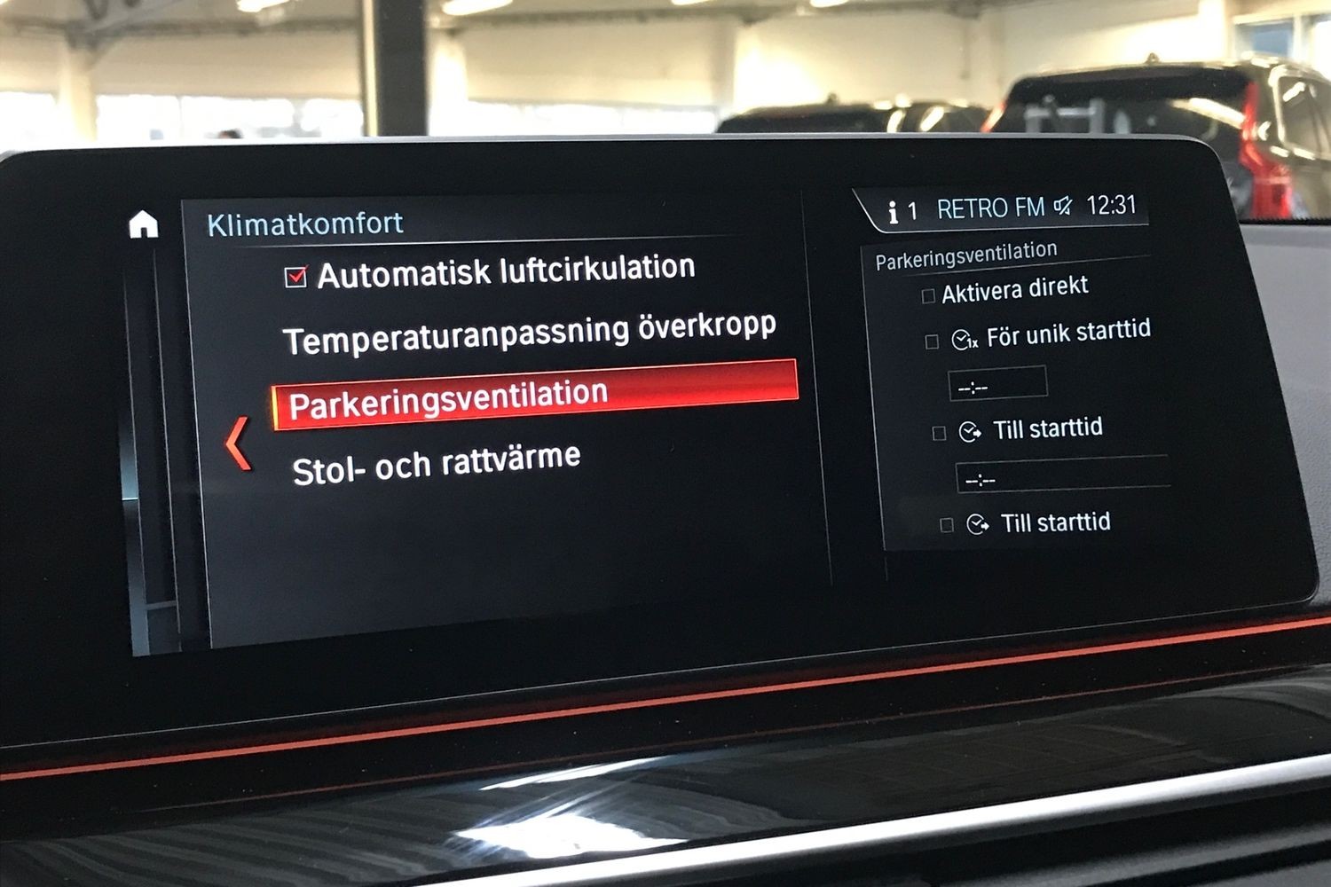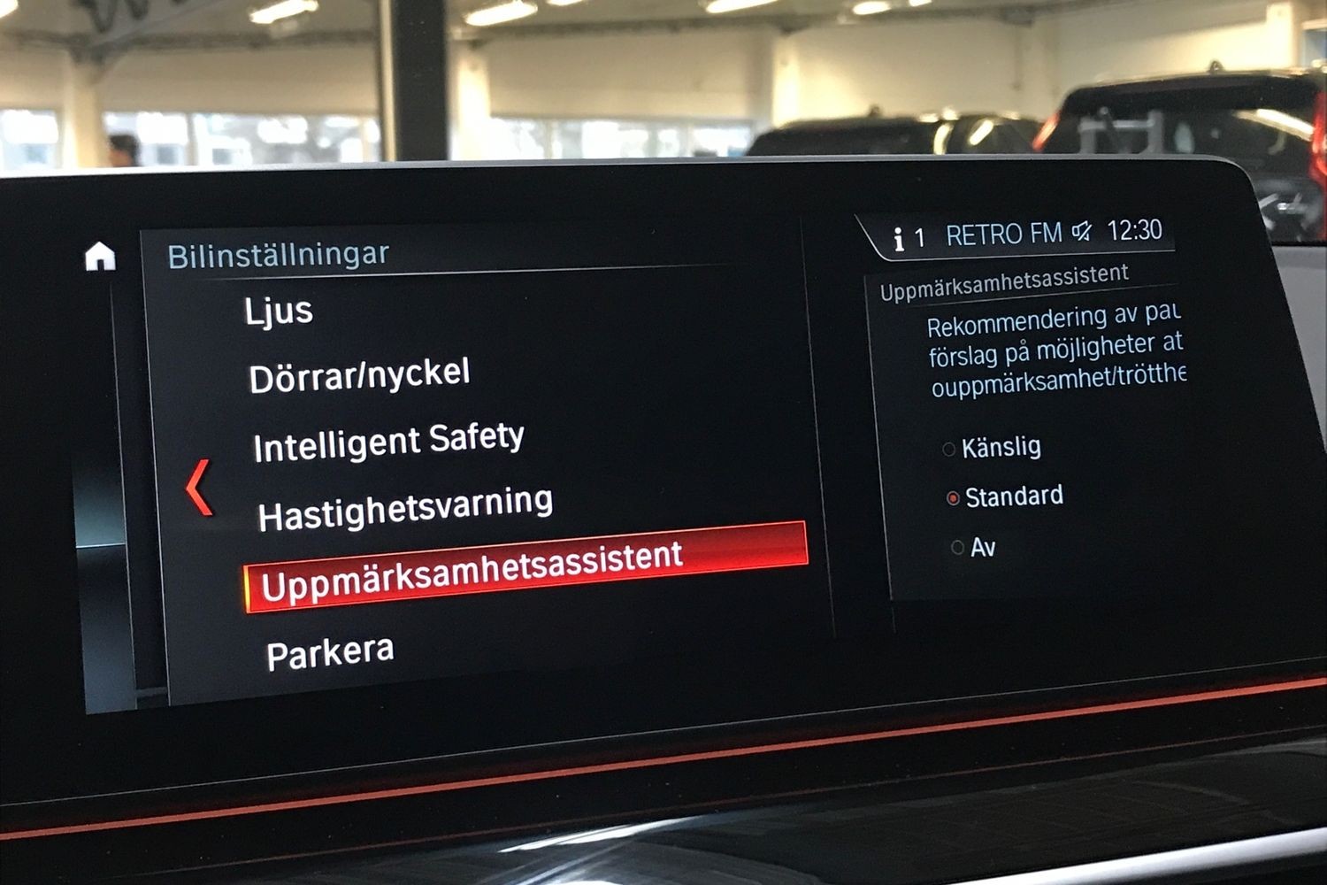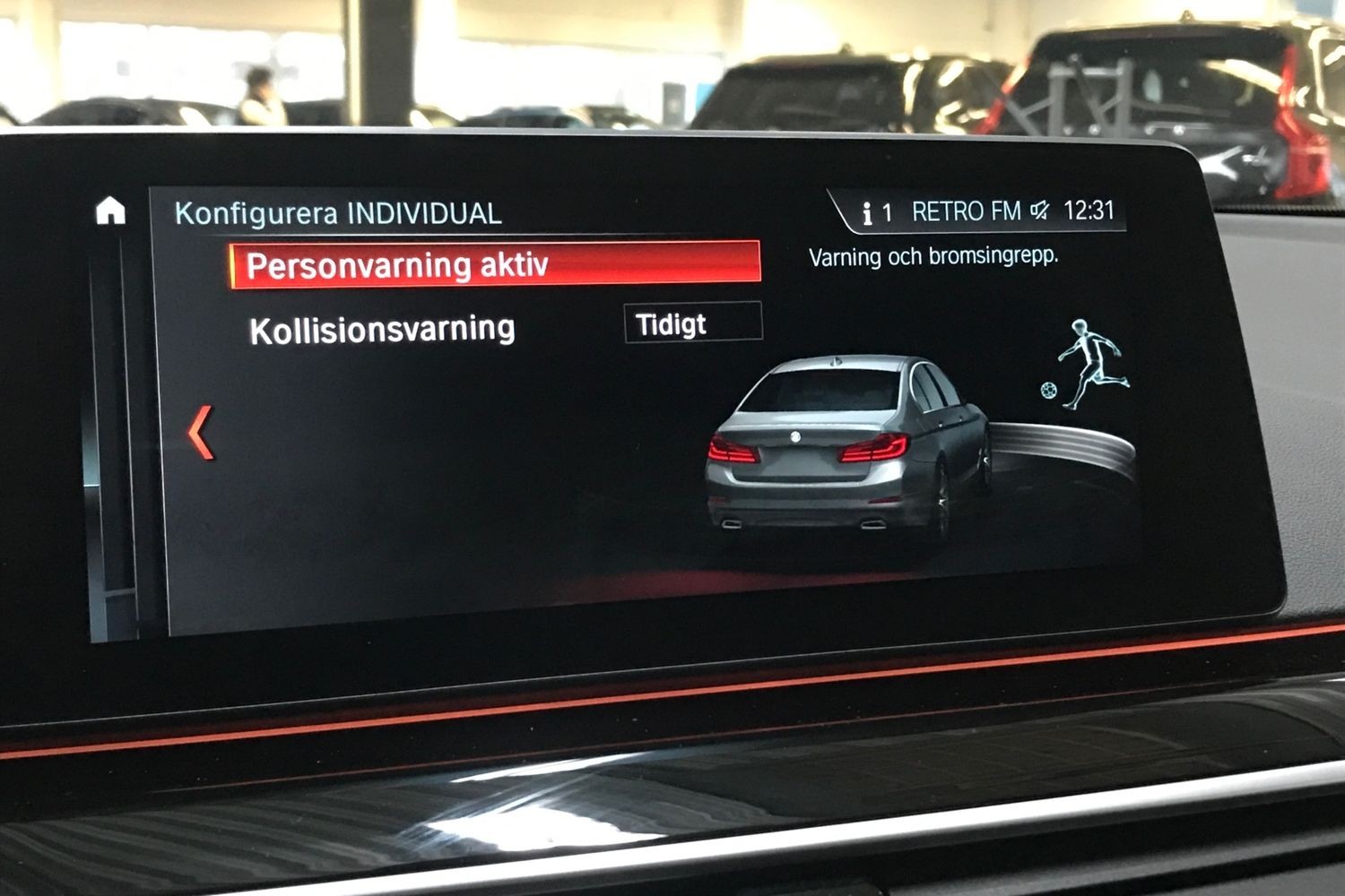Inredningsbelysning, Fotgängardetektion, Sportstolar, Trötthetsvarnare, Avstängningsbar airbag passagerare.